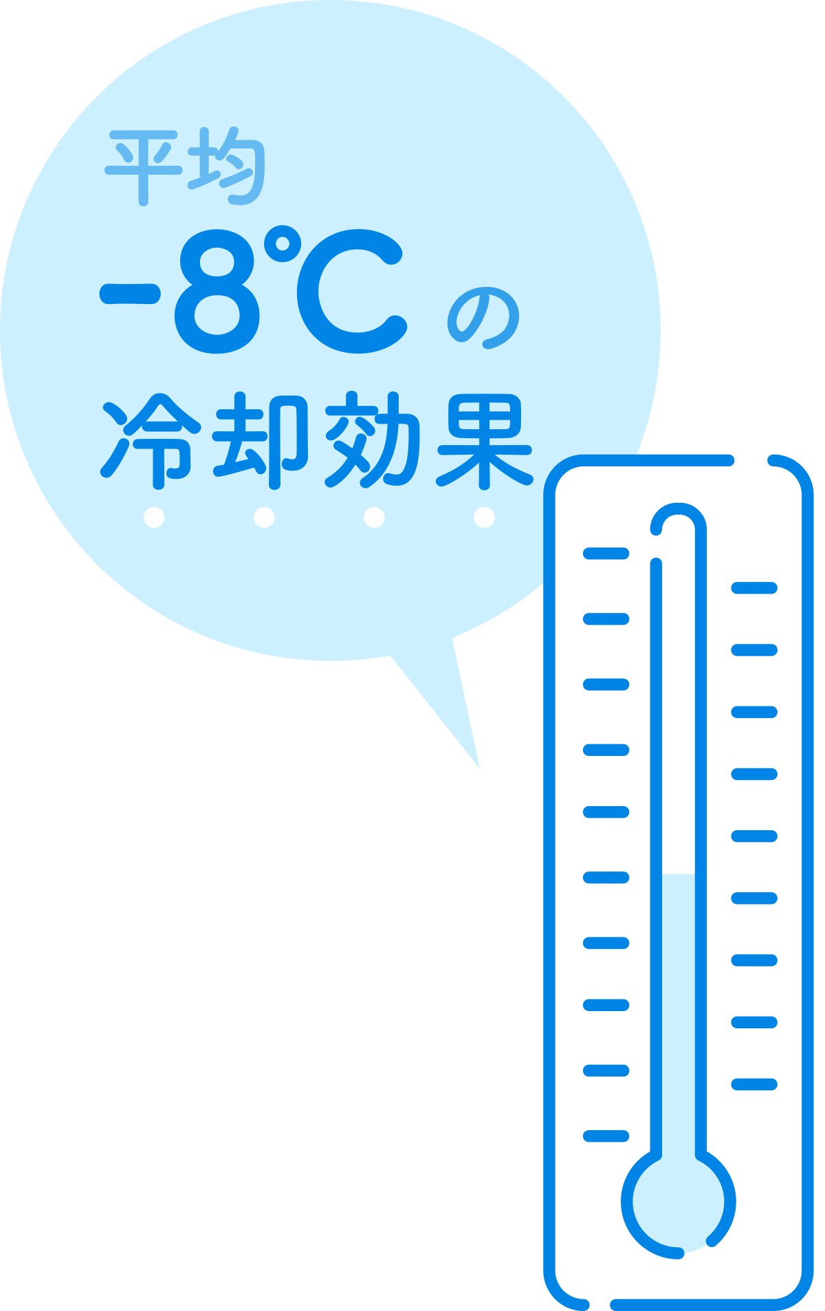 - 周囲温度より最大で約−8℃の冷却が可能です。実際の効果は設置場所の環境条件によって異なります。