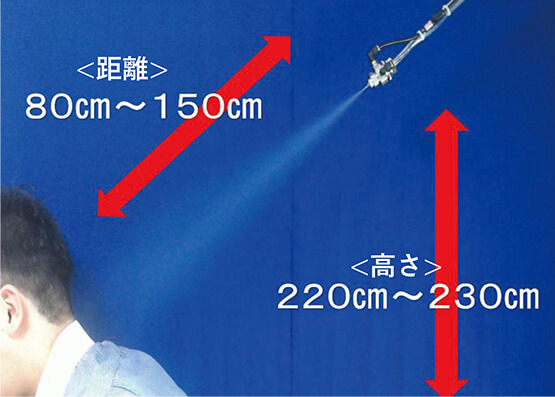 作業者からの距離は80〜150cmが目安で、ミストが首元に当たる位置に設置してください。