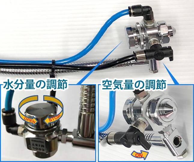 - 噴射口の背後のダイヤルを回して水分量を調節できます。